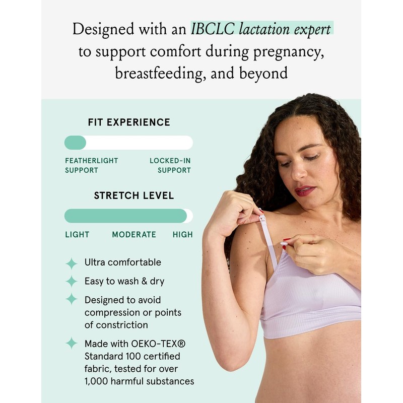 - DESIGN INFORMED BY RESEARCH: Co-designed with an IBCLC (International Board of Lactation Consultant Examiners) lactation expert, this wireless nursing bra features a wide, gentle underbust band and breathable fabric—prioritizing comfort during breastfeeding and postpartum.