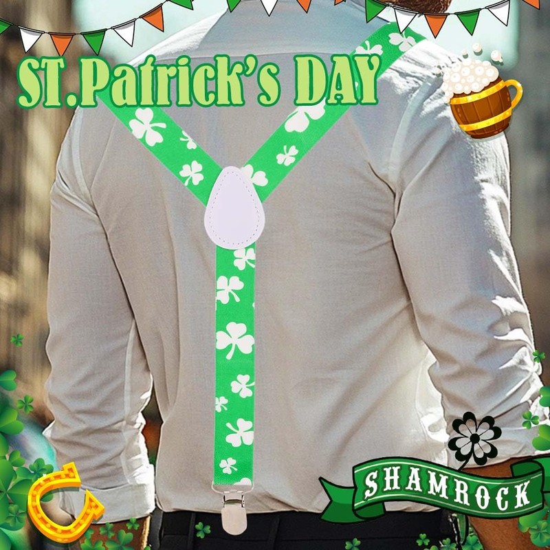 - Lucky clover suspenders is made of high quality elastic band ,shamrock and alloy,which is soft, durable,adjustable and easy to wear. Mens suspenders fitted with a sturdy metal clip that can firmly hold your pants and work all day long.