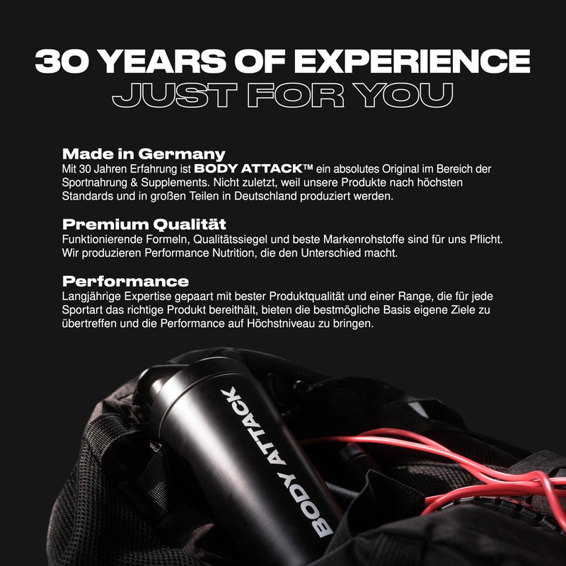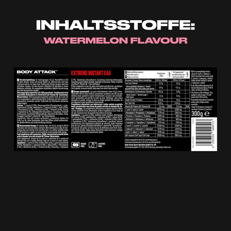 • Quality: Our Extreme Instant EAA is perfect to supplement with Body Attack BCAA and protein for strong pre-workout power. Rely on the best raw materials and working formulas made in Germany