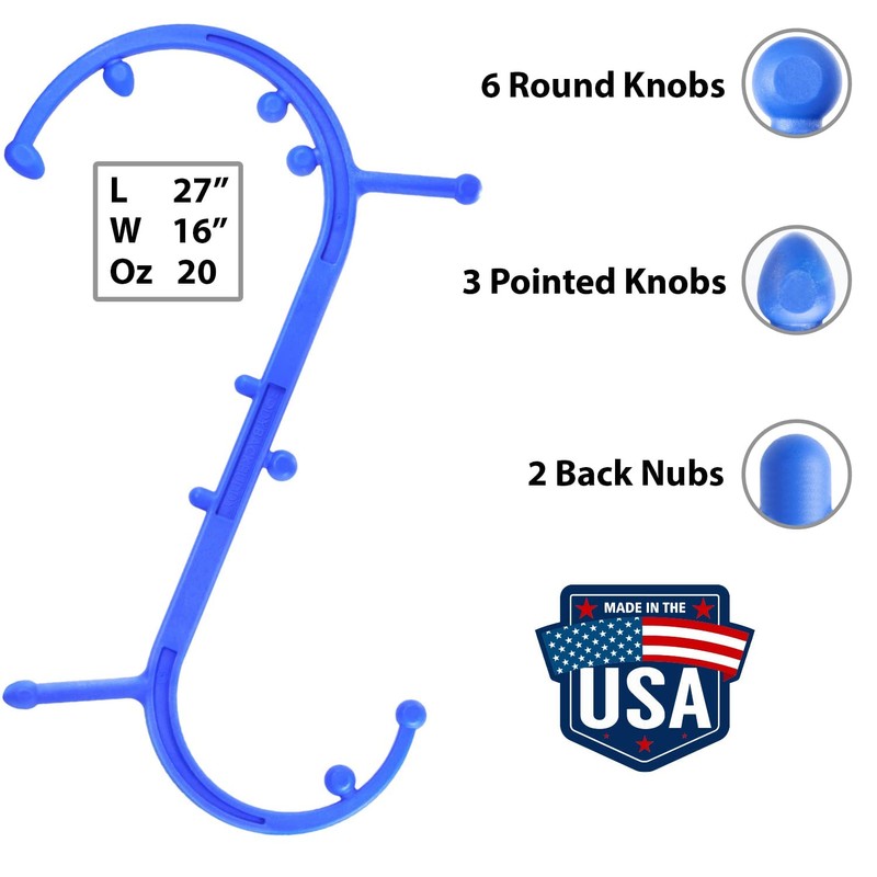 - 2 Hooks Are Better Than 1- The 2 hooks and 11 knobs (in 3 different shapes) were created to alleviate pain and soreness across the entire body. Unlike single muscle hook designs, the two hooks on the Body Back Buddy let you apply more leverage to more parts of the body. The 3 different shapes include acorns for deep tissue, round for gliding over larger muscle groups, and nubs for the lower back.