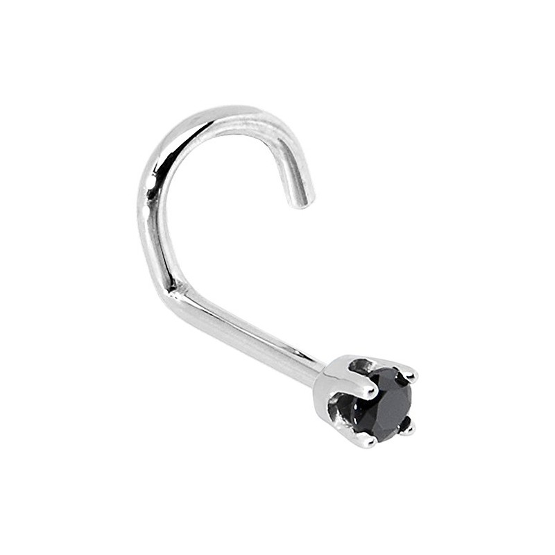 Body Candy Solid 14k White Gold 2mm Black Cubic Zirconia Left Nose Stud Screw 20 Gauge 1/4"