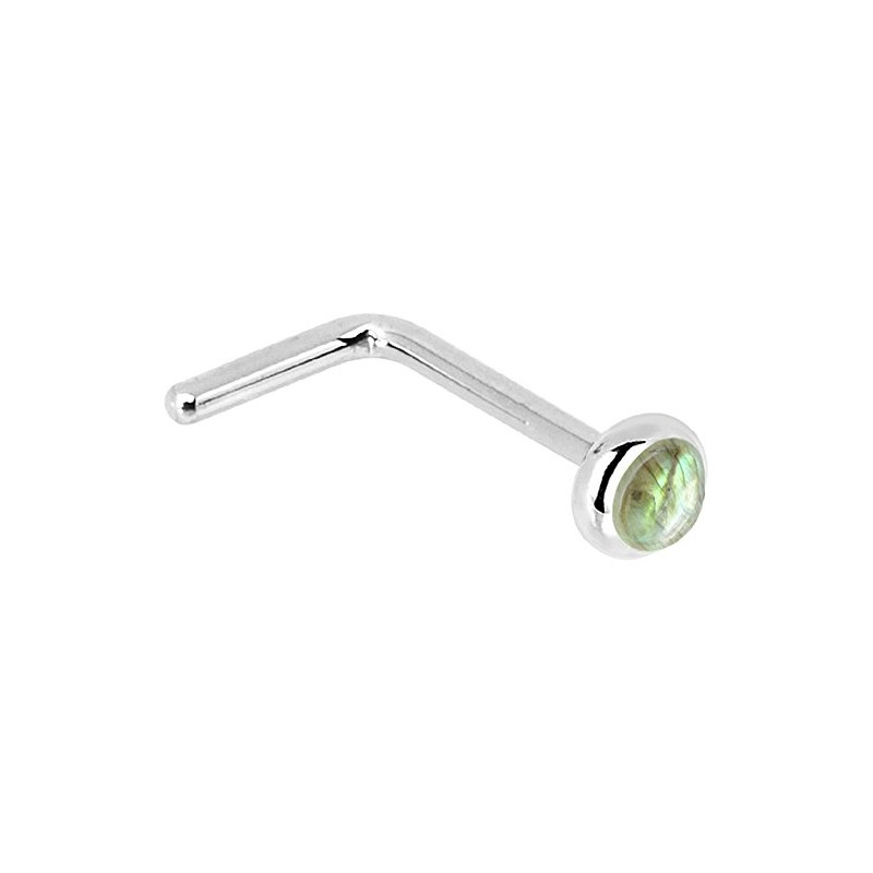 - Nose stud with natural labradorite in a bezel setting