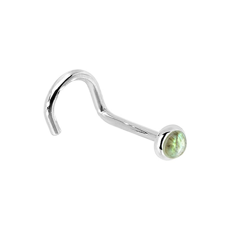 Body Candy Solid 14k White Gold 2mm Labradorite Right Nose Stud Screw 20 Gauge 1/4"