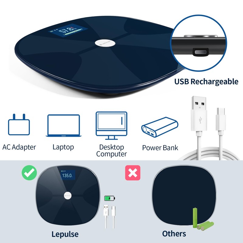 Body Fat Scale, Lepulse WiFi Scale for Body Weight, BMI Smart Scales Digital Weight Scale with Body Fat, Muscle, Rechargeable High Accurate Bathroom Scale with Pregnancy Mode, 13 Body Compositions