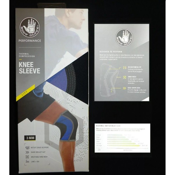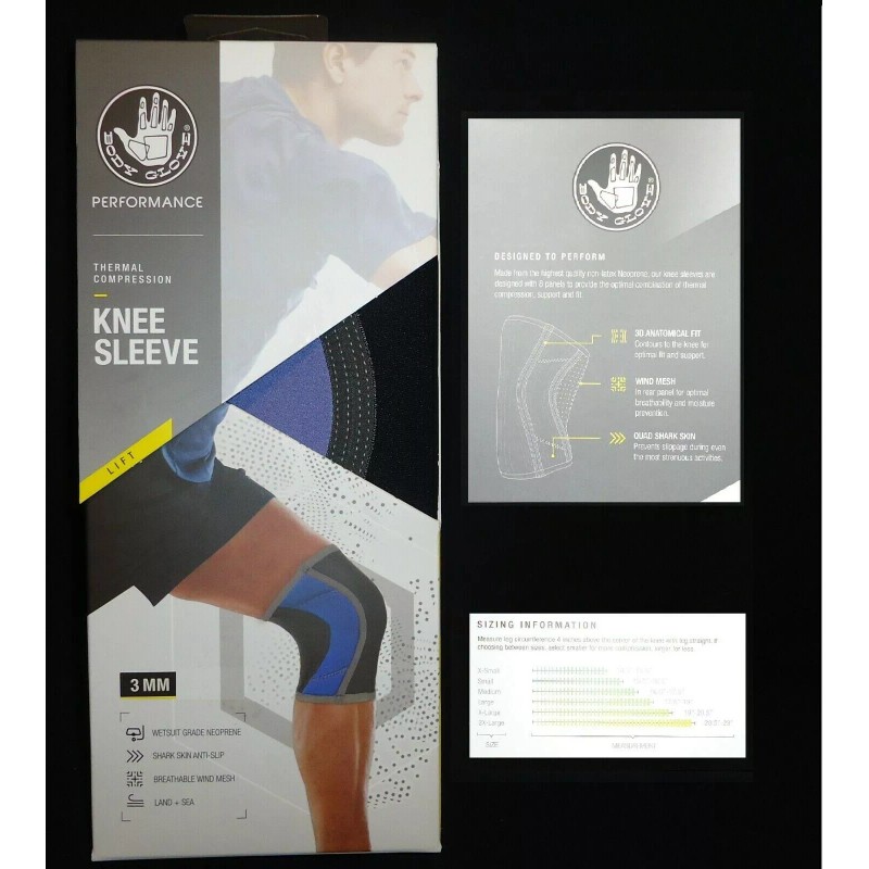 Body Glove Performance Thermal Compression Knee Sleeve Medium Black Blue Gray