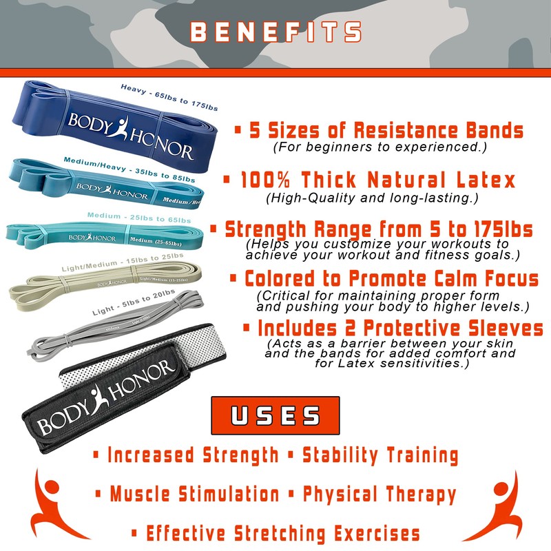 - Portable -This set includes a convenient carrying bag to enable efficient storage and transportation of your Body Honor products. Using your Body Honor drawstring bag, take your bands with you anywhere and everywhere you go. From yoga to power lifting, and everything in between, these training bands pair great with almost any type of exercise.