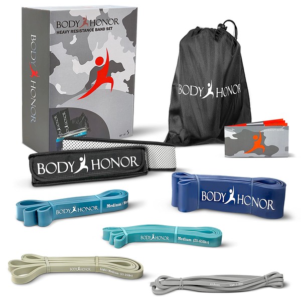 Body Honor Pull Up Assistance Bands, Resistance Bands for Men & Women, Exercise Bands, Stretching, Resistance Training, Stability Training, Physical Therapy, Posture, Mobility, Bands (Set-5)