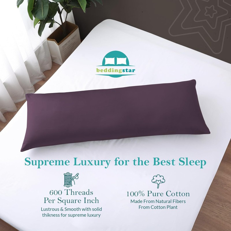 Body Pillow Cover 20x72 Body Pillow Case 100% Soft Egyptian Cotton Hotel Quality 1-Pieces Plum Body Pillow Cover Premium 600 Thread Count Body Pillowcase Zipper Closure - 20 x 72, Plum Solid