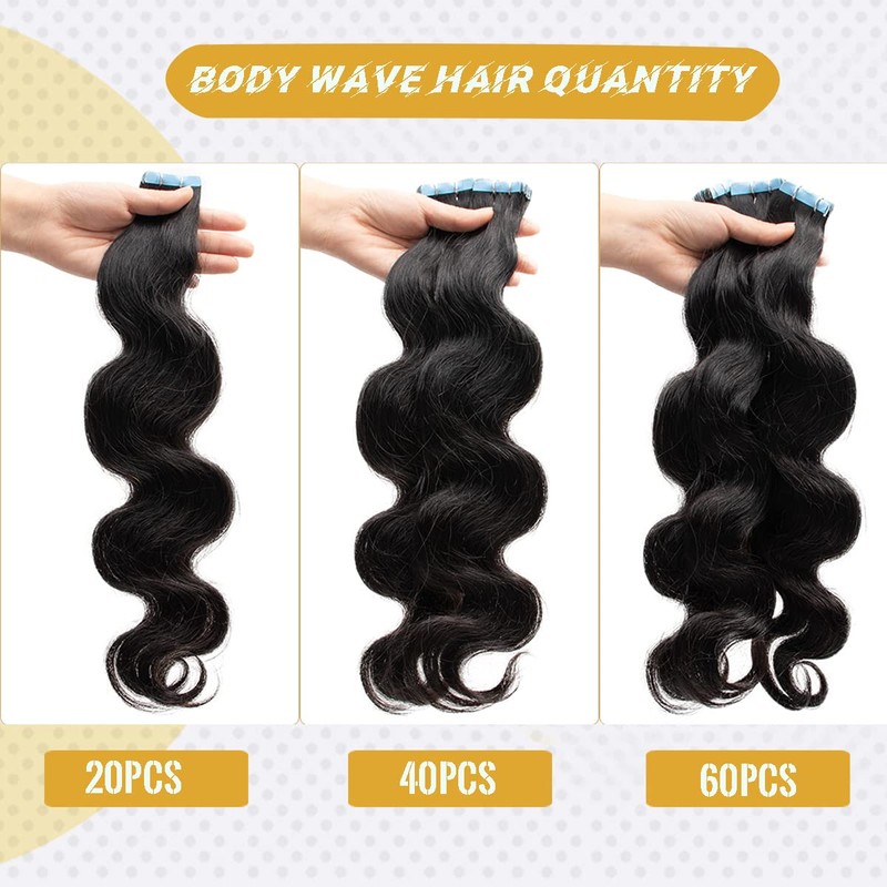- ❤Tape in Body Wave Hair & Fashion:Human Hair Extensions Tape in Wavy, Length:14-24 inches,2.5g/pc 20pcs/50g/pack. It is recommended to buy 1-2 packs for thick hair, 3-5 packs for thin hair.14-24 inches are available. Hair extension is the same as our own hair, have its life ,which need more careful than our own hair to prolong the hair extensions using time.