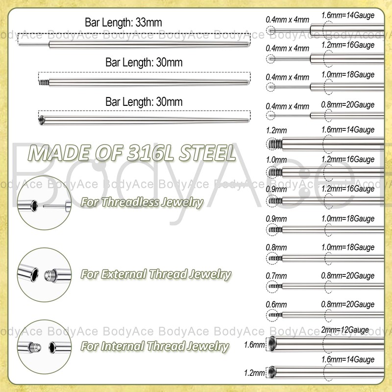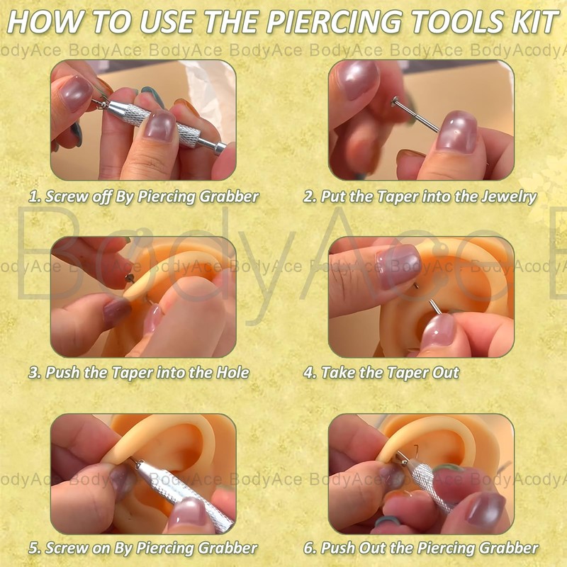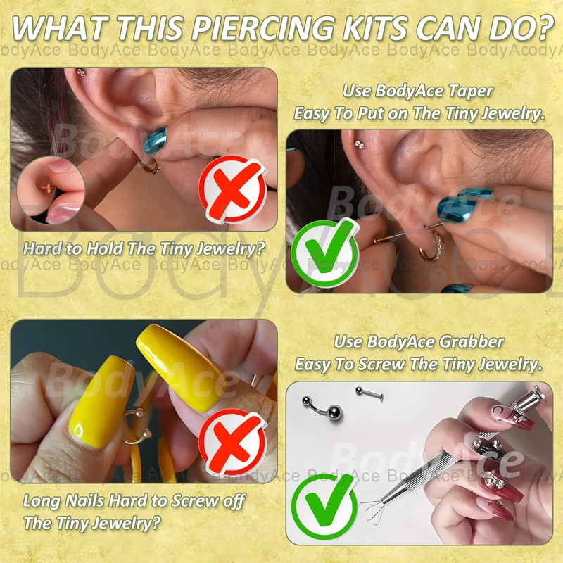 - BodyAce Jewelry: The 16 g taper / 14 g taper / 18 g taper / 20 g taper fits your piercing jewellery with thread-free and internal thread. It is a good choice for your piercing. The piercing tools are originally from BodyAce Jewelry.