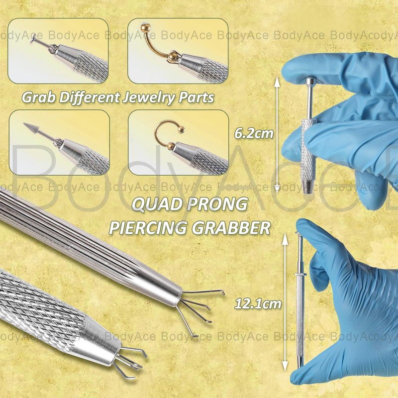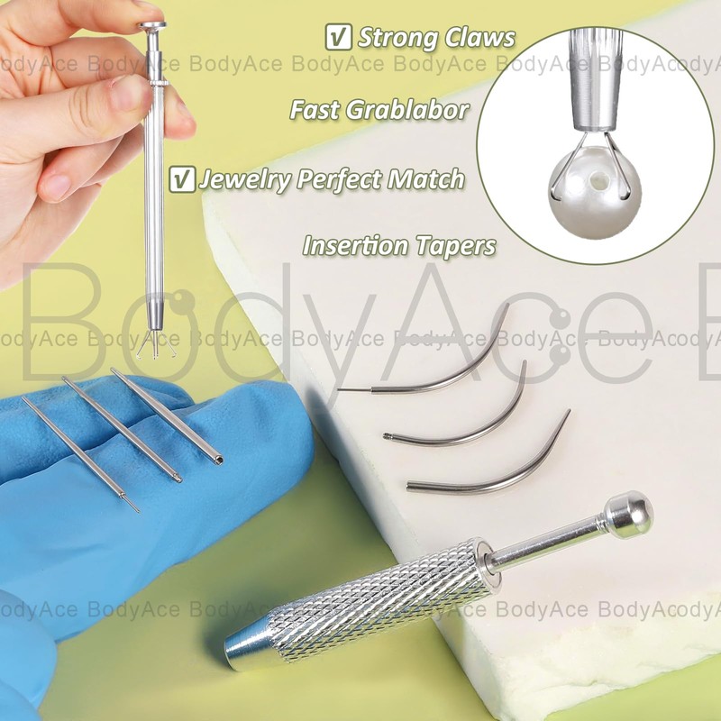 BodyAce 14G 16G 18G 20G Piercing Taper Ball Gripper Stainless Steel Auxiliary Tools for Jewellery Changing Threadless Piercings Threader Tool Set for Ear/Nose/Navel/Lips, Stainless Steel