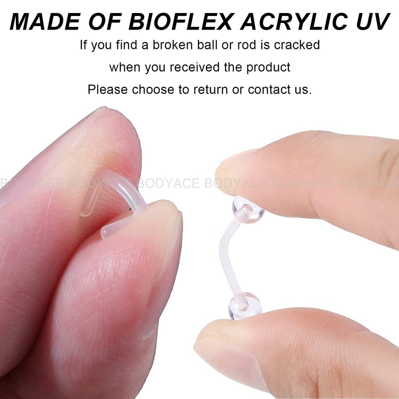 BodyAce Clear Piercing Retainers Acrylic Bioflex Nose Piercing, Plastic Lip Piercing, Tragus Piercing, Ear Cartilage Earrings, Septum Hoop, Tongue Piercing, Belly Button Jewellery, Cubic Zirconia