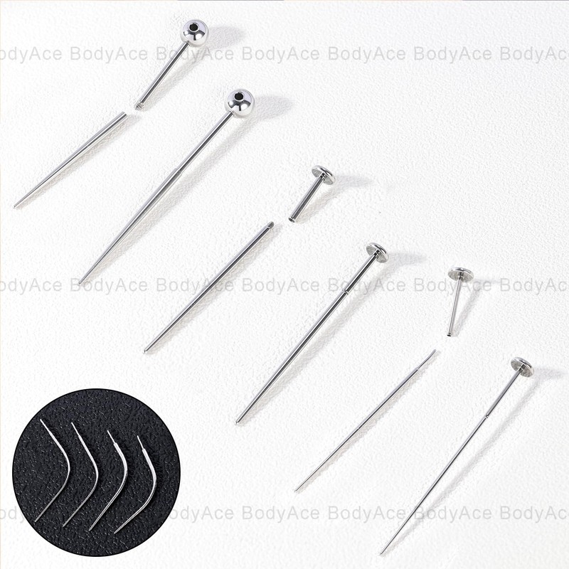 BodyAce Stainless Steel Piercing Taper Insertion Pin, 14G 16G 18G 20G Threadless Assistant Tool, Screw-On Curved Piercing Stretching Kit, Stainless Steel, others