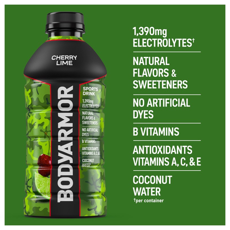 BODYARMOR Sports Drink Sports Beverage, Cherry Lime, Coconut Water Hydration, Natural Flavors With Vitamins, Potassium-Packed Electrolytes, Perfect For Athletes, 28 Fl Oz (Pack of 15)