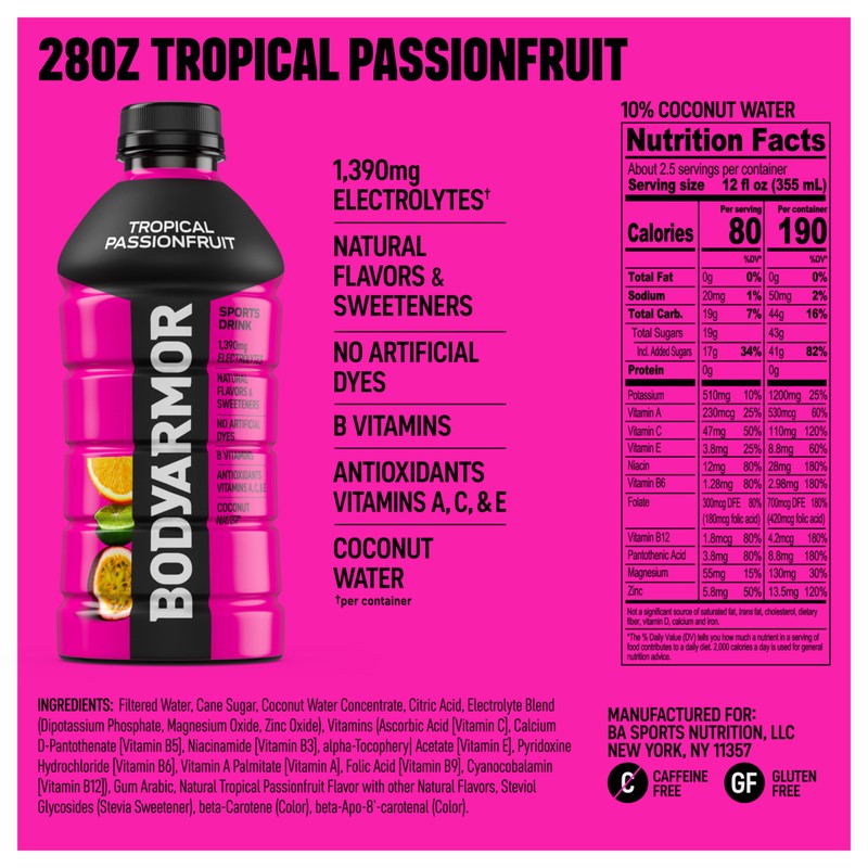 BODYARMOR Sports Drink Sports Beverage, Tropical Passionfruit, Coconut Water ...