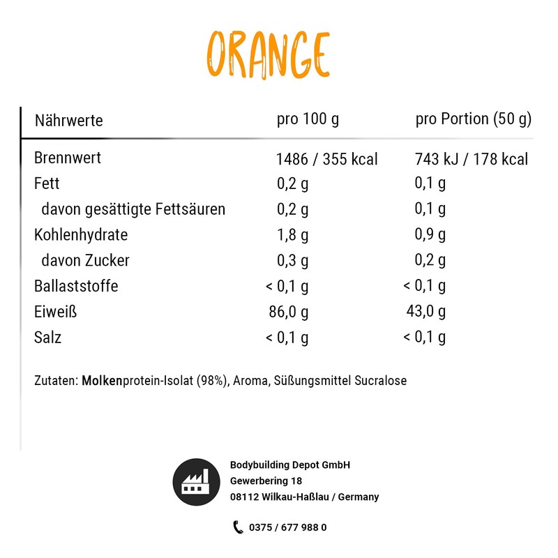 Bodybuilding Depot - WPG-85 Clear Whey Protein Granules/Isolate 1 kg - Orange | Specially for Mixing in Water | Perfect Solubility | High BCAA and EAA Content