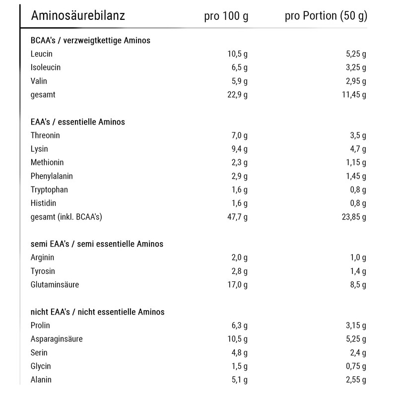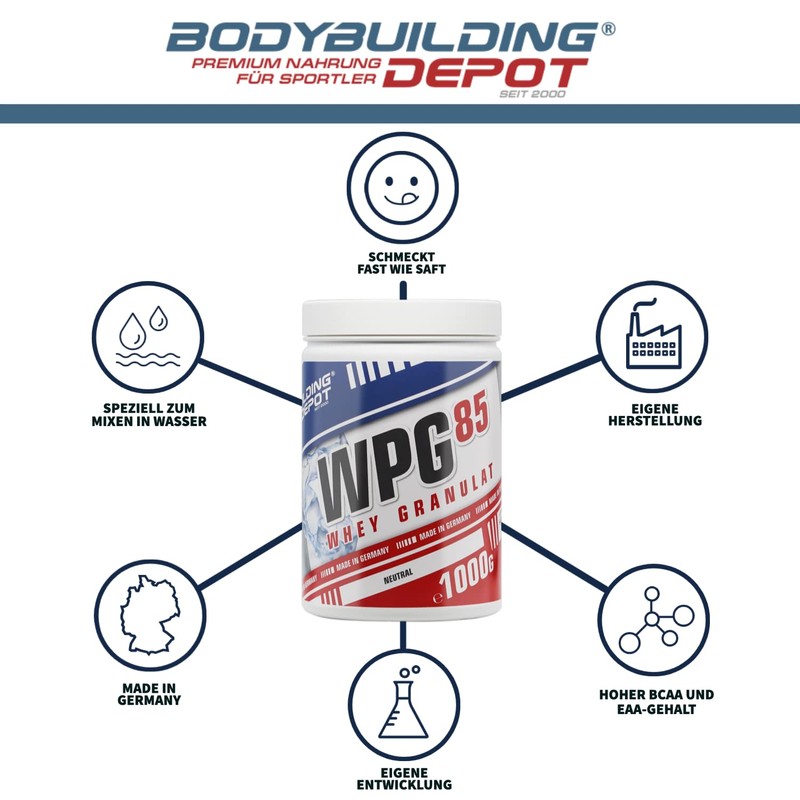 - Excellent nutritional values: taste and nutritional values make the WPG-85 unique. It does not taste like normal protein, but like protein water. The less powder you use, the lower the taste. 88% protein, 0% carbohydrates, 0% fat, high BCAA content and EAA content. The WPG-85 is a protein made from 100% fast protein components.
