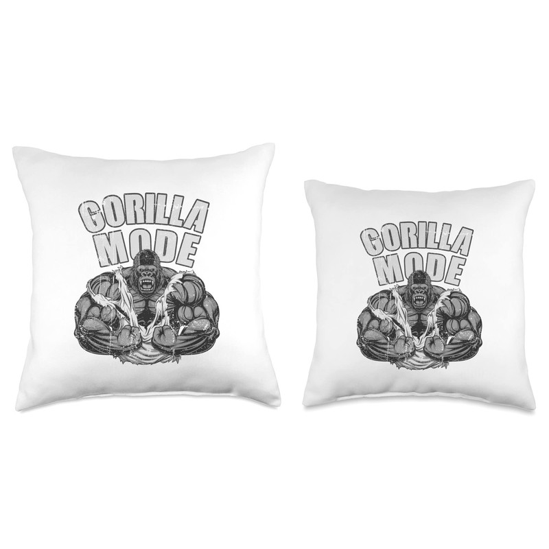 Bodybuilding Gorilla Mode Gym Ape Fitness Coach Swole Monkey ON Backside Throw Pillow, 16x16, Multicolor