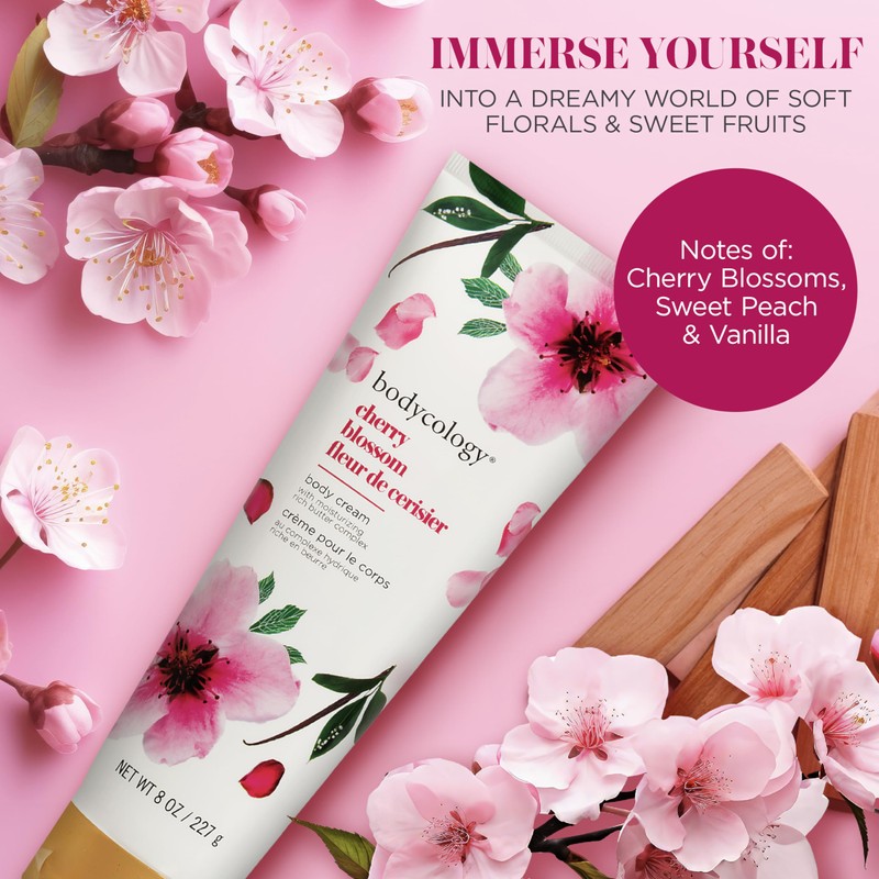 - Blushing cherry blossom blooms with fragrance to produce a blissful and radiant scent.
