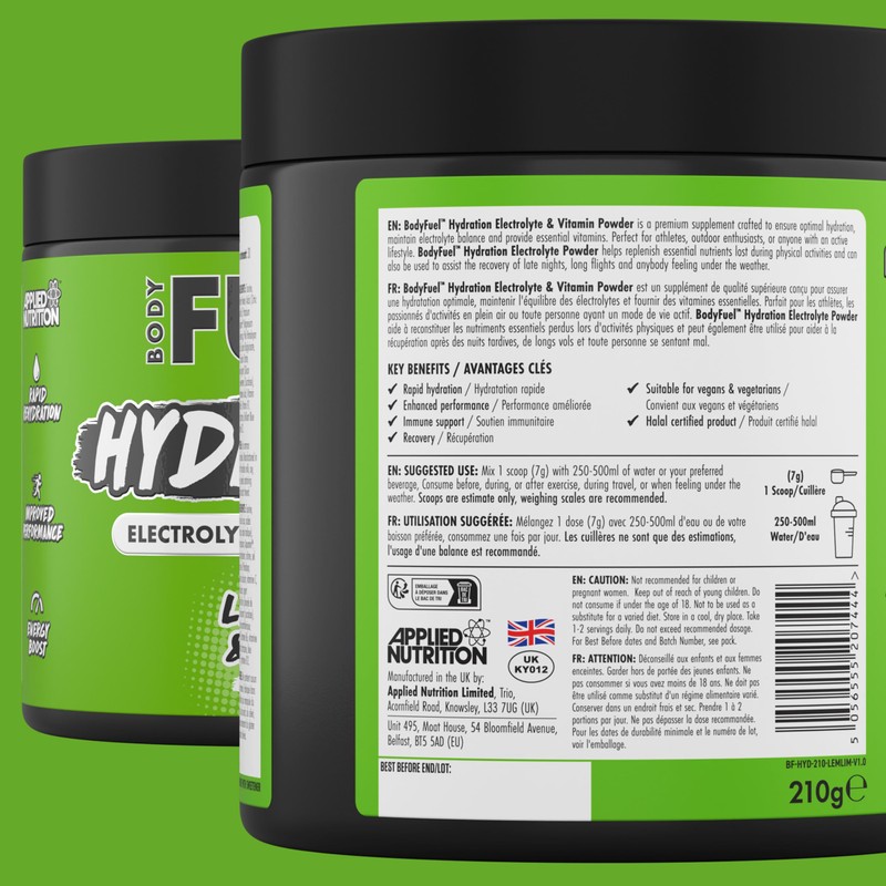BodyFuel Hydration Electrolyte & Vitamin Powder - Natural Energy & Reduces Tiredness & Optimise Hydration (210g - 30 Servings)(Lemon & Lime)