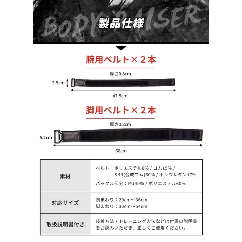 BODYRAISER Compression Training Belt, Intellectual Property Rights Approved for Arms and Legs, Set of 4, Unisex, One Size Fits Most, Diet, Effect, Strength, No Rights Reproduction, For Beginners to Intermediate Students, Training