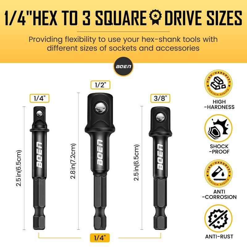 - Built to Last – Stronger Than Ever: Crafted from Chrome Vanadium Steel, Chrome Molybdenum, our adapters are heat-treated and hardened for maximum durability. They’re engineered to withstand heavy-duty use and offer long-lasting performance, ensuring they can keep up with even the toughest projects
