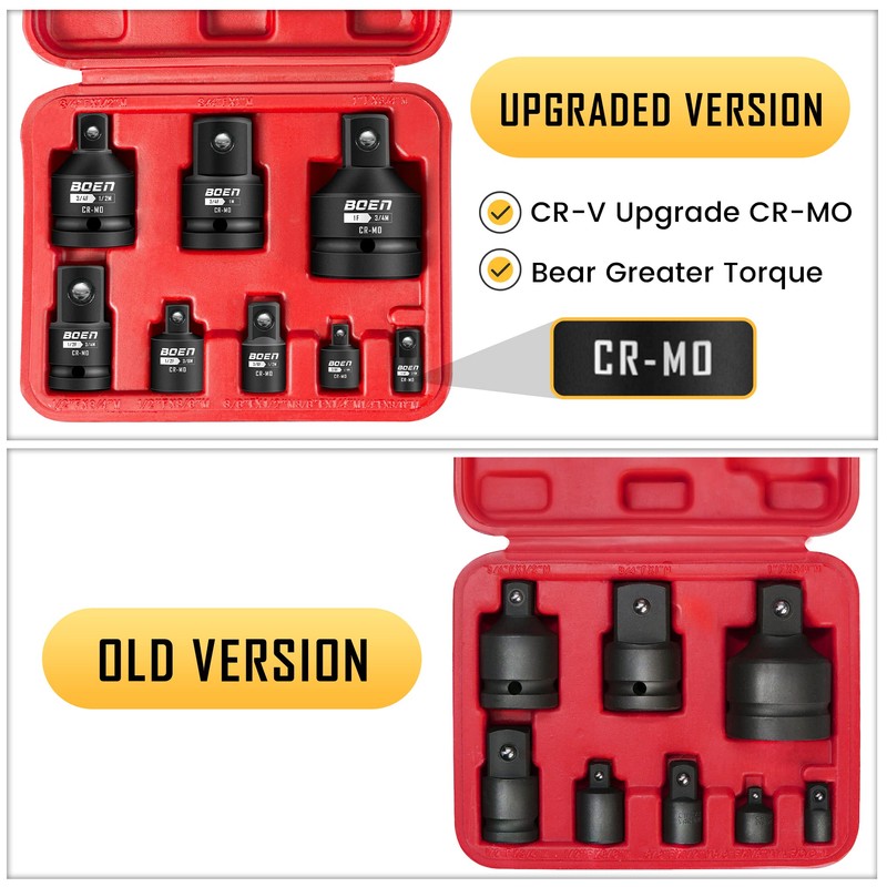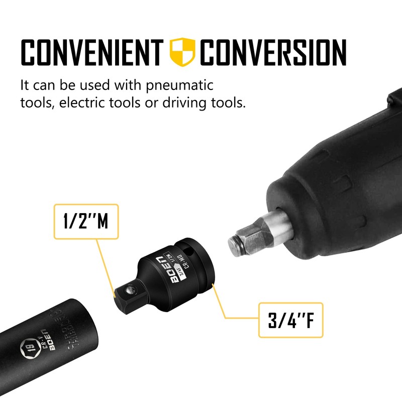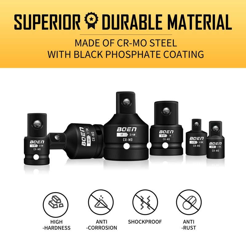 - 【SUPERIOR CR-MO STEEL】 Constructed with heat-treated forged chrome molybdenum steel material, BOEN impact adapter set features high hardness and durability, and can withstand the test of different jobs.