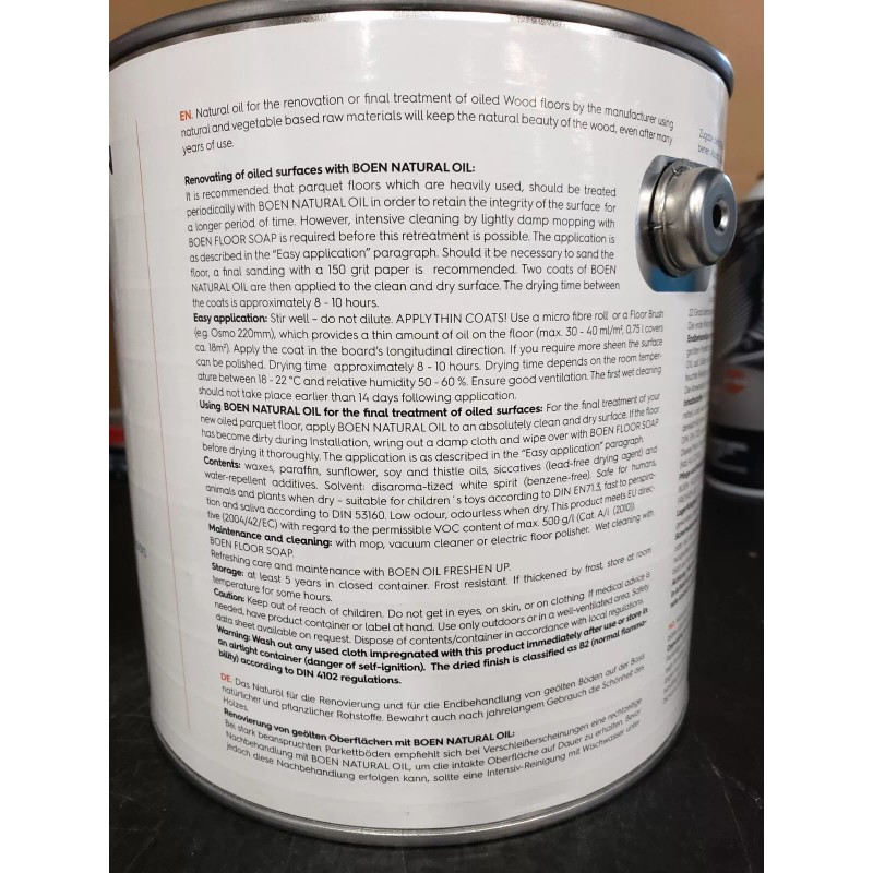 Boen (A502S001) Natural Parquet Oil For Wood Floors- 2.5 Liter Container
