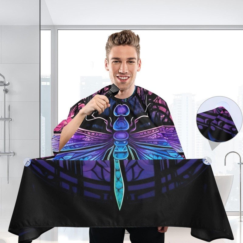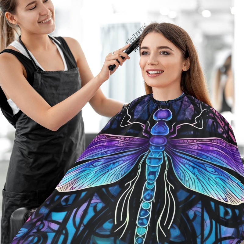 BOESI Doodle Purple Dragonfly Barber Shawl, Waterproof Haircut Shawl, Haircut Salon Apron, Shaving Bib, 55 x 65 inches