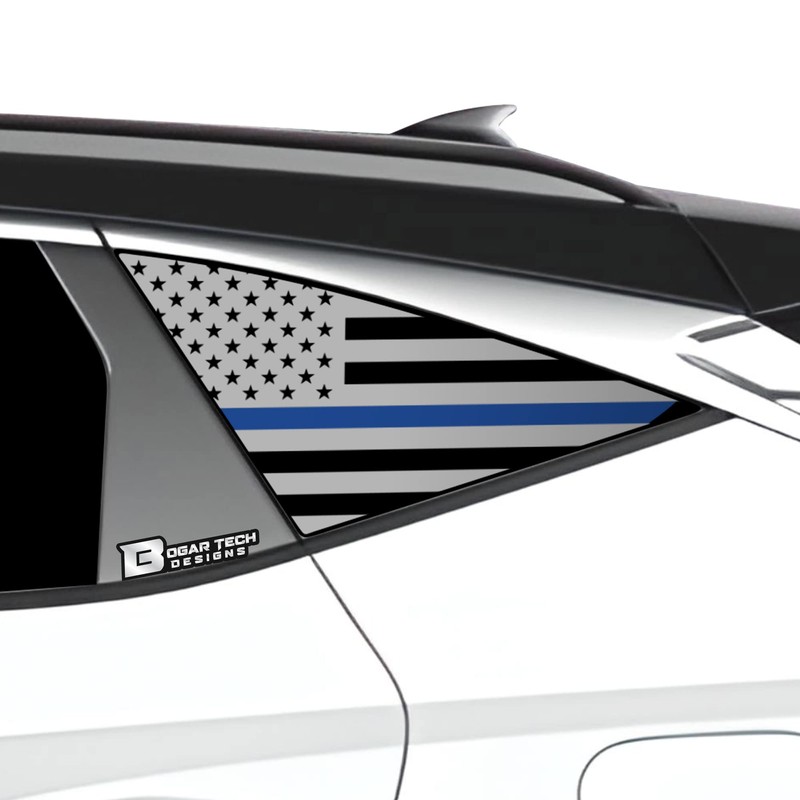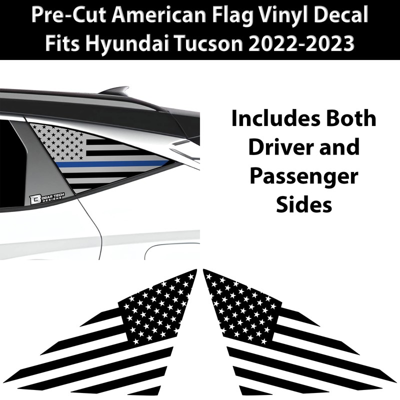BOGAR TECH DESIGNS Precut Quarter Window American Flag Vinyl Decal Sticker Compatible with Hyundai Tucson 2022 2023+, Thin Blue Line