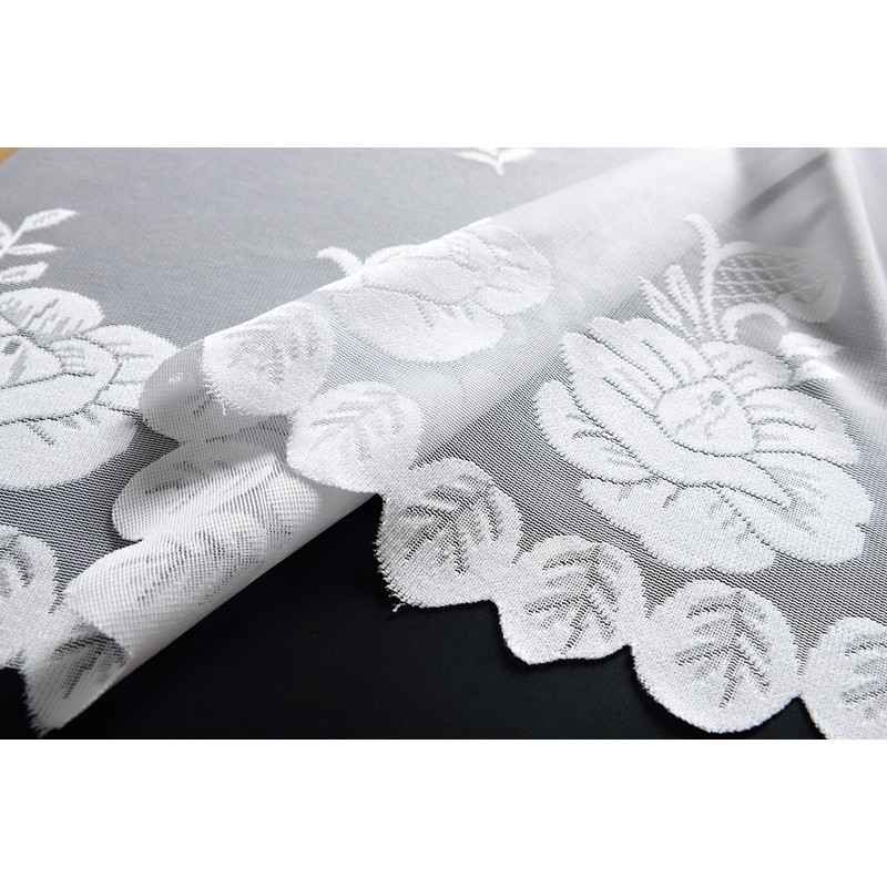 Bogenstore Jacquard Curtain, 145 x 600 cm, Floral Pattern, White, Ruffle Tape, Universal Tape, Pleated Tape, Store, 13140