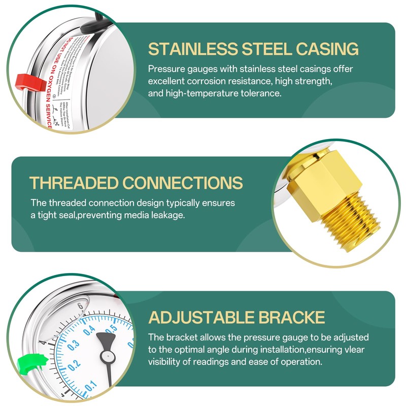 Stainless steel offers excellent wear and corrosion resistance, the iquid-filled pressure gauges are designed for extended service life and stable performance.