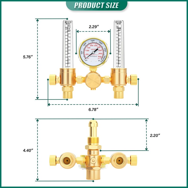 • [Precision Gas Regulation] Brass valve body with pressure gauge, stable output pressure (0-4500PSI adjustable), one-piece bracket, welding gas flow uniformity, reduce porosity defects.