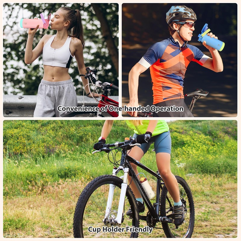 - 【2 IN 1 Duo Lid Design】: BOGI 24oz metal water bottle insulated has a 2 in 1 duo lid design that you can drink through the straw lid directly or push button opening the lockable push button fip lid twist the cap to pour the water. There is a handle on the water bottle lid so you can carry it easily.Our water bottle with straw is not only suitable for indoor scenes but can also be used as an outdoor water bottle or a camping water bottle, suitable for mountaineering, hiking, and other scenes