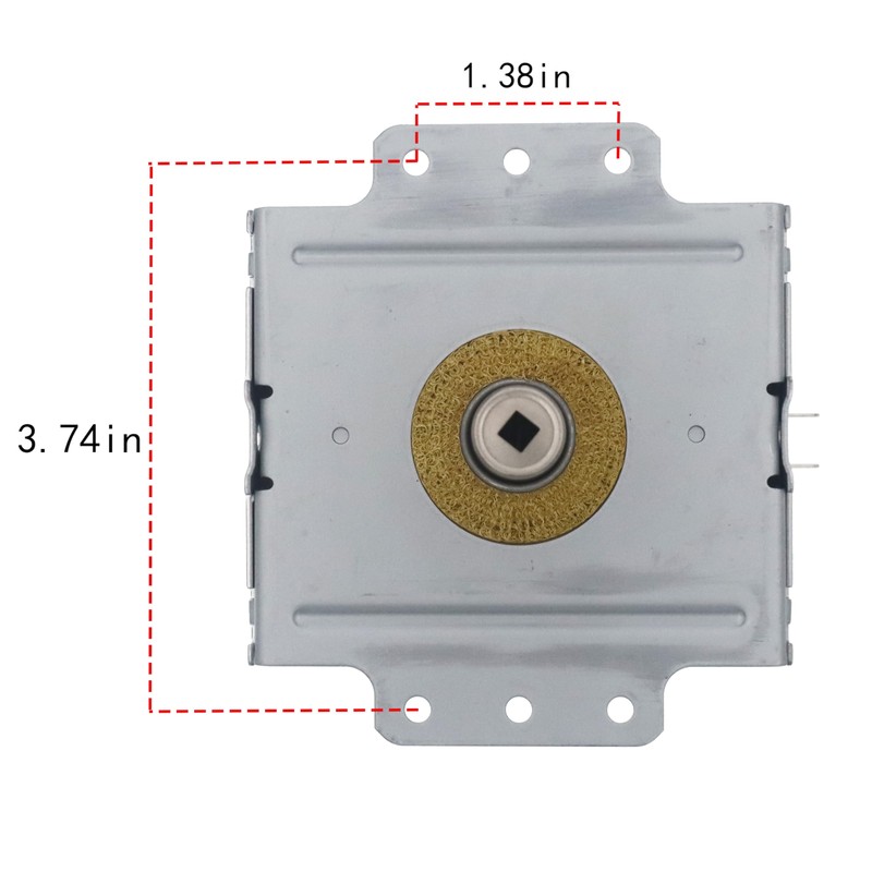 The BoginIty 2M253J magnetron can replace mainstream models such as 2M253J, 2M248J, 2M217J, WB27X10309/10QBP1006/4150019905. This product has been upgraded with heat dissipation technology to ensure stable temperature, effectively protect internal components, and extend service life. The BoginIty 2M253J has strong compatibility and can be replaced when the mounting hole parameters are consistent, which effectively solves the problems of unstable heating temperature and slow speed of microwave oven. The output power of this product is 860W, and the product frequency is 2460MHz. Mounting Aperture: Length: 3.74in, Width: 1.38in. Base plate size: 4.25in length and 3.74in width. Please confirm the parameters carefully before purchasing.