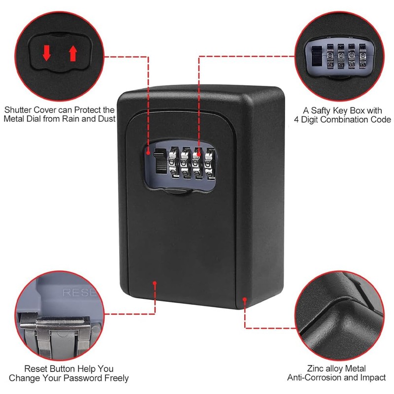 - Four digit password: key box 4-digit password allows you to set your own combination of 10,000 unique options, and the initial password is 0000 by following the step-by-step instructions.