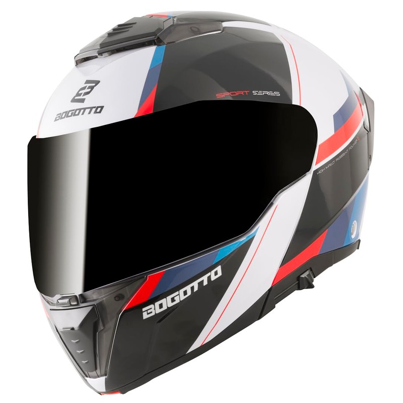 Bogotto Ezion Flip Up Helmet, Matte Black/White/Red/Blue, S