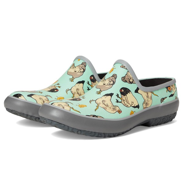 BOGS Women's Patch Clog Chickens Rain Boot, Aqua Multi, 8