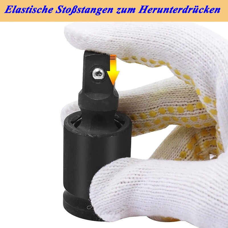 - The universal joint impact adapter, the ball spring at the end of the rod and the anti-fall bolt hole in the adapter can lock the plug to ensure safe use and avoid falling off.