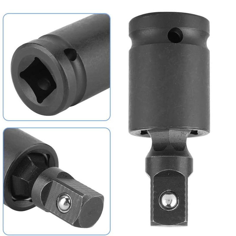3. The swivel adapters include three types of universal joints (sizes 1/2", 3/8", and 1/4")