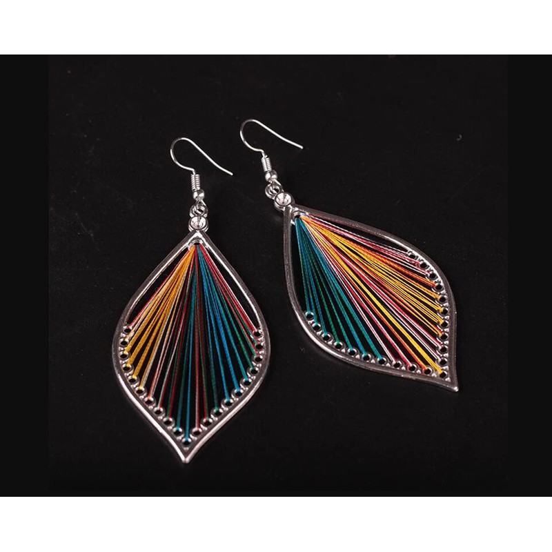 Bohemian Colorful Layered Leaf Tassel Earrings Exaggerated Handmade Silk Thread Oval Dangle Drop Earrings for Women