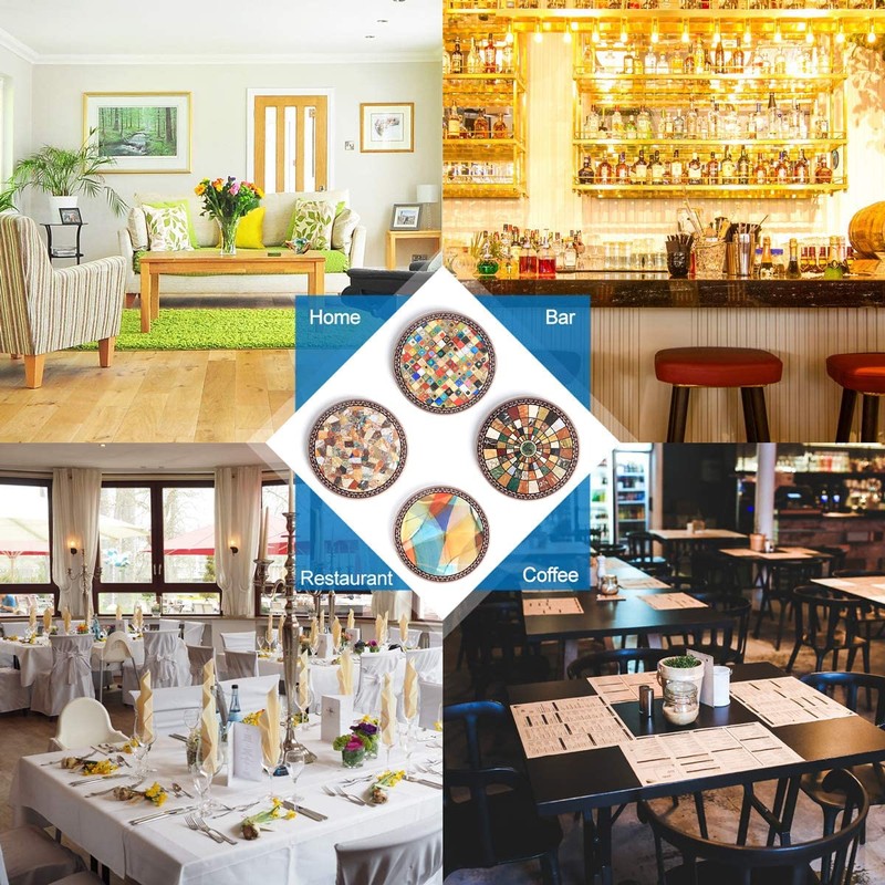 - SUITABLE SIZE & PACKAGE - The Coasters come with 4pcs, and measure 4" from point to point. This is a perfect size for drinking glasses, coffee cups, white wine glasses, tea cups, or any other average sized glass.