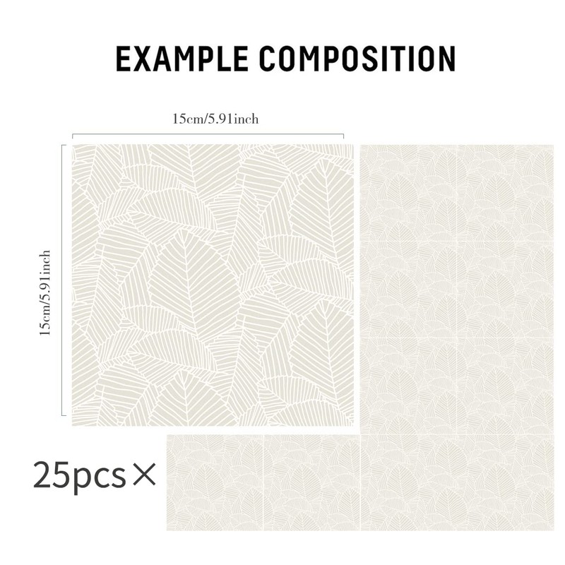 Boho Art Peel and Stick Vinyl Tile Stickers, Self-Adhesive Wall Tile Decals, Waterproof Backsplash Stickers for Kitchen Bathroom Decor, Beige Abstract Leaves, 6x6inch/15x15cm, 25Pcs