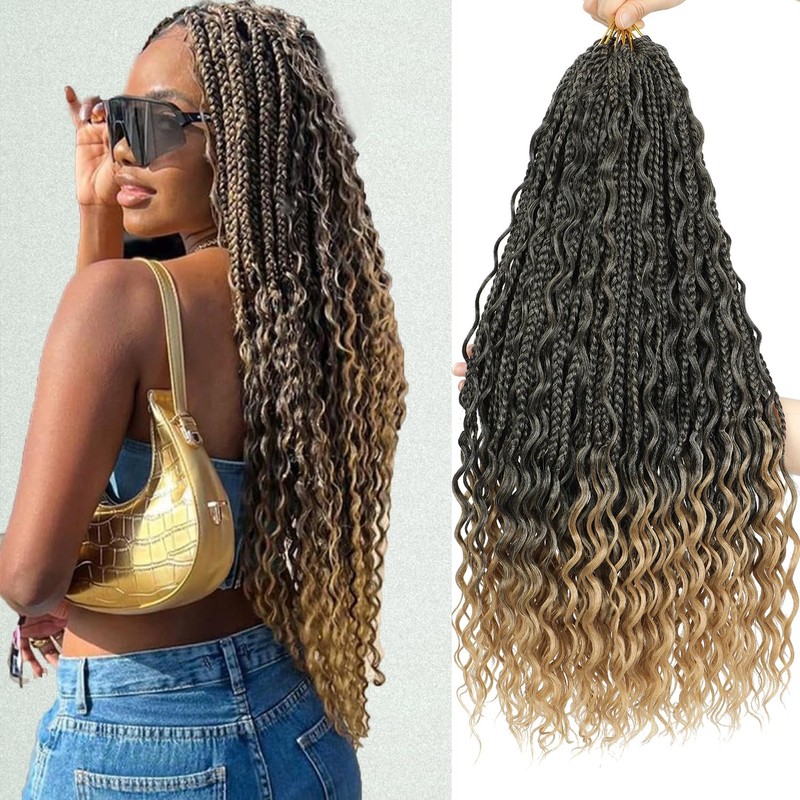 - 【Easy to Install】Boho bohemian box braids crochet hair with curly ends is Pre-Looped, easy to work with install, save more time and easy to diy hairstyles, suitable for beginners.