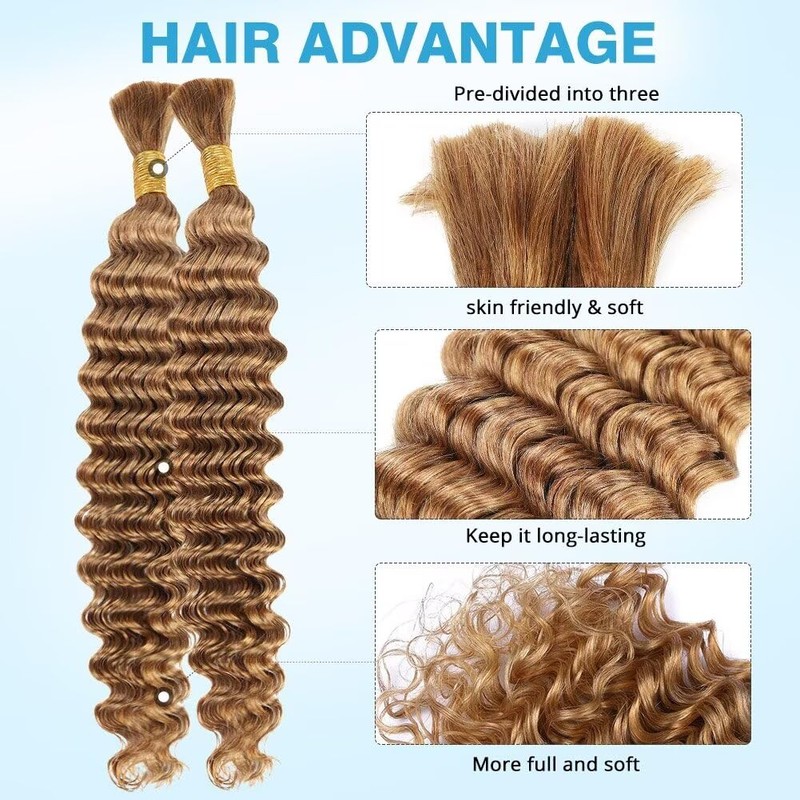Boho Braids Blonde Human Hair Extensions - Deep Water Wave, 27 Curly, 18 Inch, 100g, No Weft, 2 Braids Per Pack, Wet and Wavy