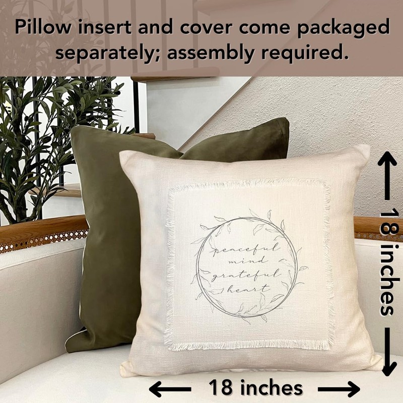Boho Chic Decorative 18x18 Pillow Cover - Unique Couch Accent for Living Room or Bed - Sofa Throw Pillow Case by Second Nature By Hand (Peaceful Mind, Grateful Heart)