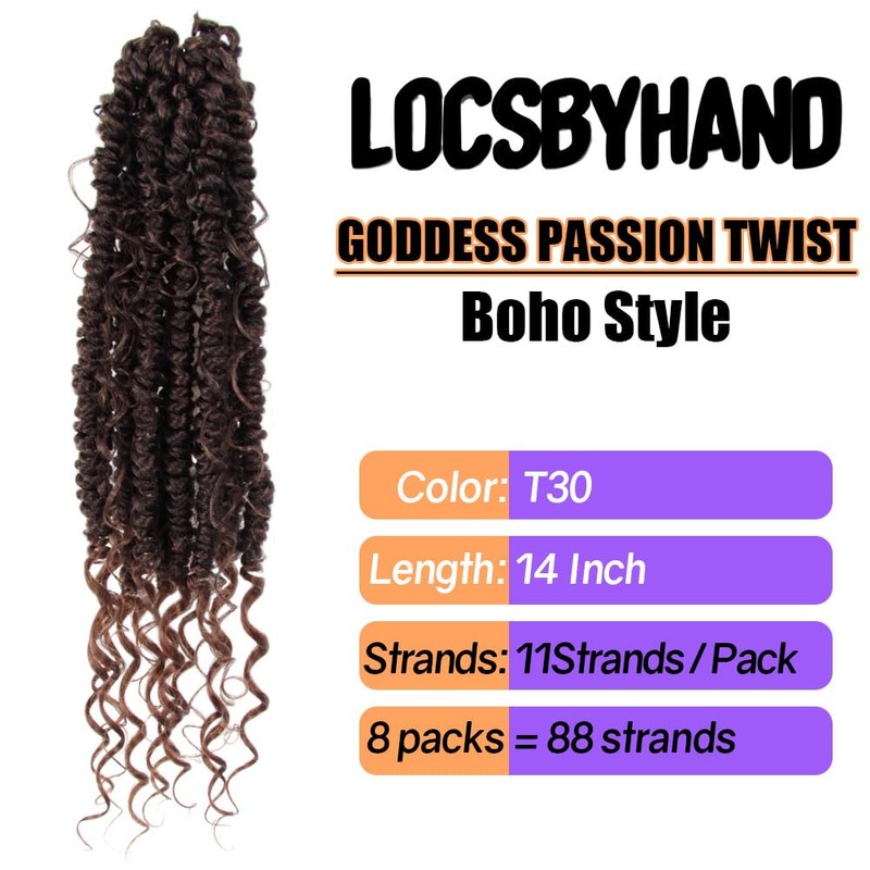 Boho Crochet Passion Twist Hair Pre looped, 14 Inch Goddess Passion Twist Crochet Hair with Curly Ends 8 Packs Ombre Light Brown Pre-twisted Bohemian Crochet Braids (8 PCS/88 STRANDS, T30)