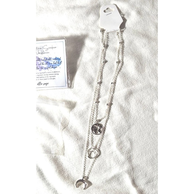 Elevate your boho style with this Adventure Seeker multi-layer necklace from Ellie Sage. This brand new, still in packaging necklace is perfect for the free-spirited fashionista who loves to create unique layered looks. The necklace features a bohemian-inspired design with multiple layers that add depth and dimension to any outfit.