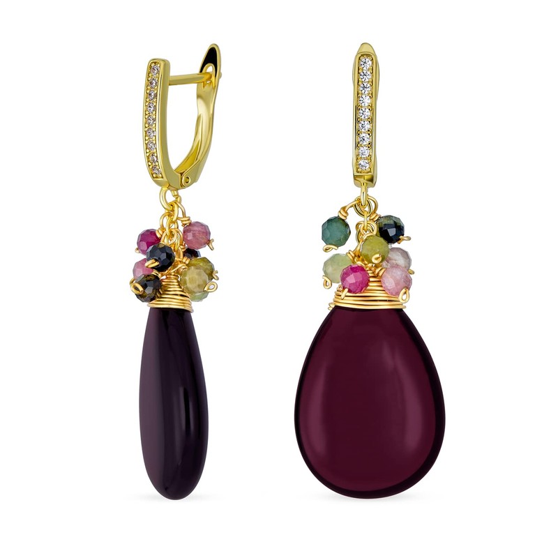 - Unique Design: These teardrop-shaped earrings feature semi-precious stones, aligning perfectly with today's fashion trends.