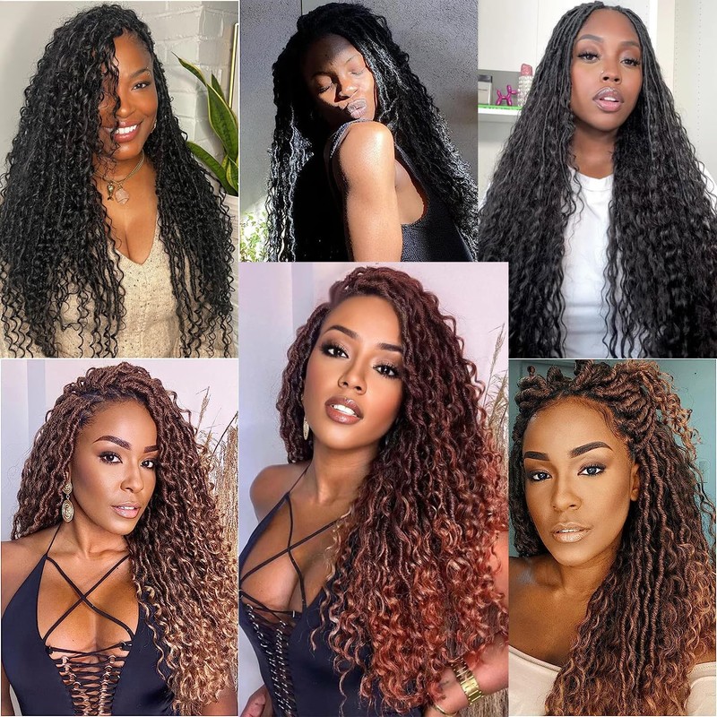 - 5.Style: Goddess Bohemian Locs Crochet Hair Features Deep Curls, Making Your Hair Look Fuller. with Multiple Upgrades, it’s Lighter, More Skin-Friendly, and More Natural. Whether for a Weekday, Date, Wedding, Christmas, Halloween, or Other Special Occasions, You'll be The Center of Attention!